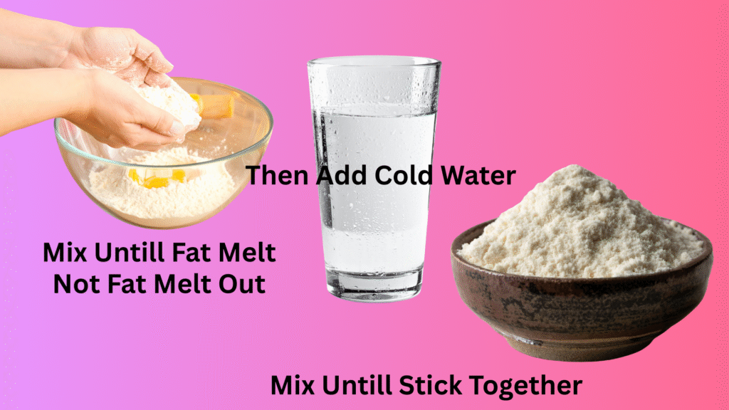 Pie Crusts And then I’m going to add my water I like to use cold water cold water is going to make the fat so it doesn’t melt I am going to start to bring it together Again with this you don’t want to add too much water and you don’t want to work it much the goal here is to add as little water as possible to bring it together fitflvorplate
