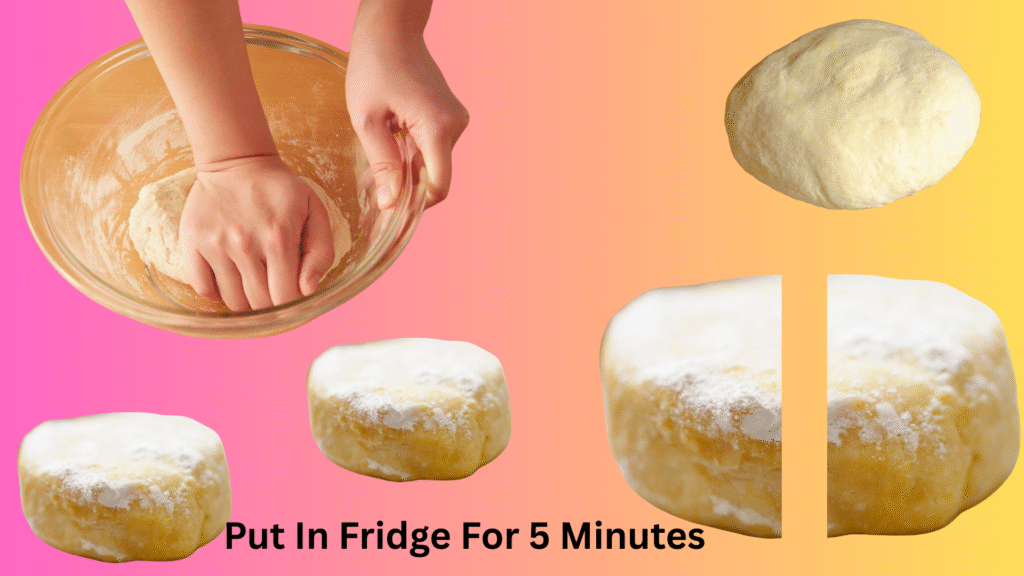 we put the dough inside the fridge for five minutes I don’t want it to be hot but I don’t want it straight out of the fridge so, basically what I am going to do when I unwrap it so I am going to dust this with a little bit of flour